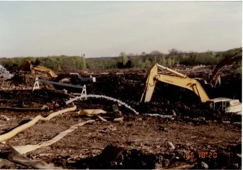 March 8, 1997: News video footage of the fire at Deepwood Dump, the largest illegal landfill in Texas. Dallas Fire Department chief Dan Watson describes the entire site as 80 acres, and that they are concerned with a fire area of solid waste of approximately 30 to 40 surface acres with a height of 30 feet. He estimates cleanup time as two to three weeks with an approximate cost of one million dollars. The Deepwood Dump was later converted to the Trinity River Audubon Center as a result of the lawsuit Cox v. City of Dallas, 256 F.3d 281 (5th Cir. 2001): http://youtu.be/QkE1-1fXOeA