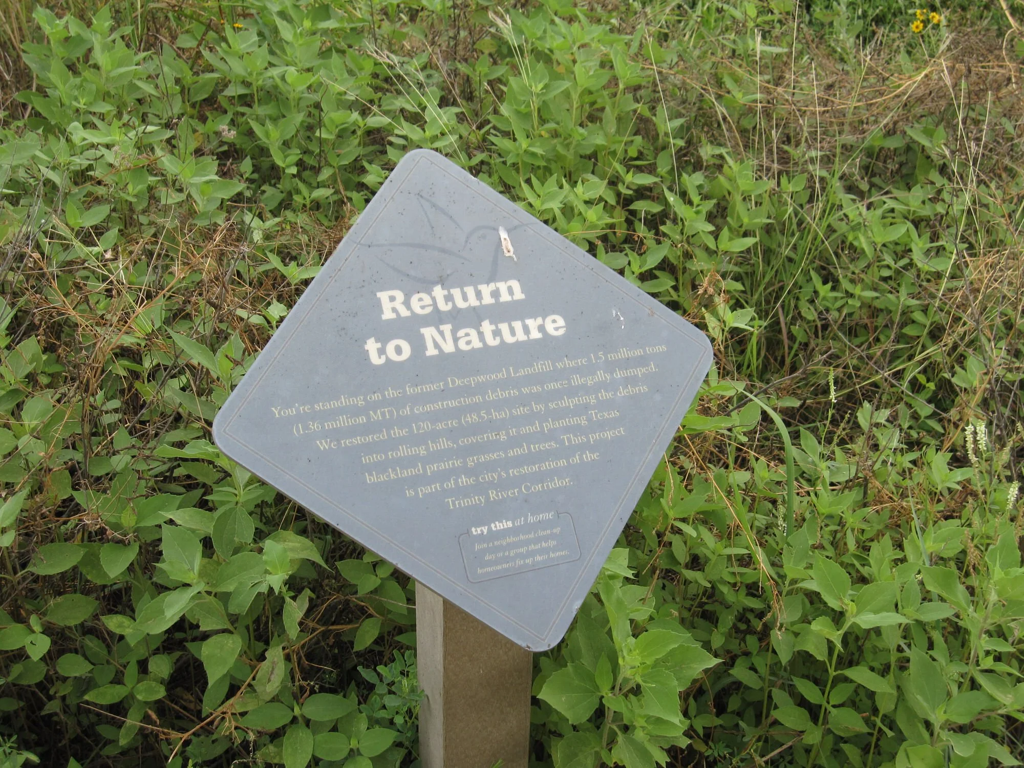 This plaque at the Trinity River Audubon Center recounts the history of the site as a landfill.